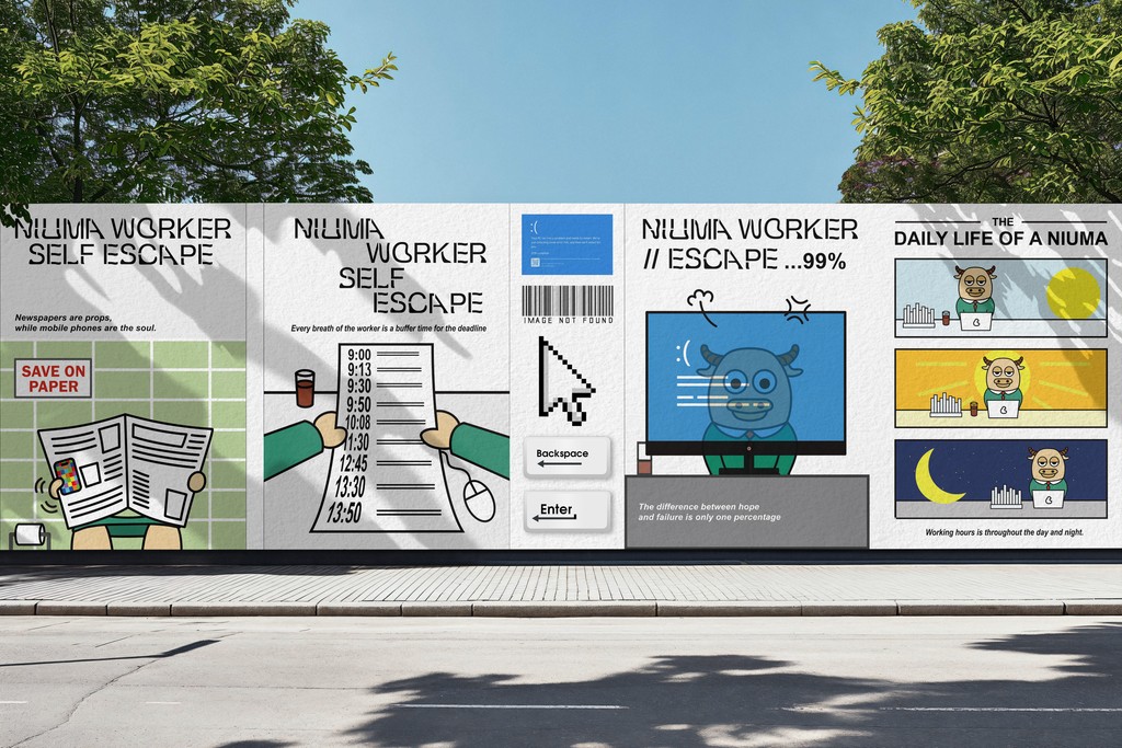 This project is inspired by the Chinese internet meme "NIUMA," explores the emotions of contemporary workers in the workplace, reflecting the absurdity and monotony hidden within everyday professional life.